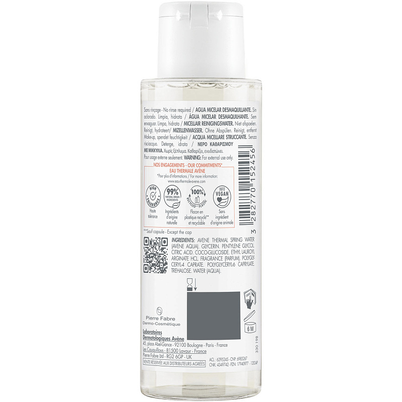 Мягкое очищающее молочко разработано для комфортного очищения и снятия макияжа. Благодаря высокой концентрации термальной воды Avène, молочко успокаивает и сохраняет естественный баланс кожи. Подходит... Показать описание для чувствительной кожи вокруг глаз и при ношении контактных линз. Для женщин. Формула протестирована на переносимость под дерматологическим и офтальмологическим контролем. 98% натуральных ингредиентов. Без ингредиентов животного происхождения. Флакон на 100%* состоит из переработанного и перерабатываемого пластика.