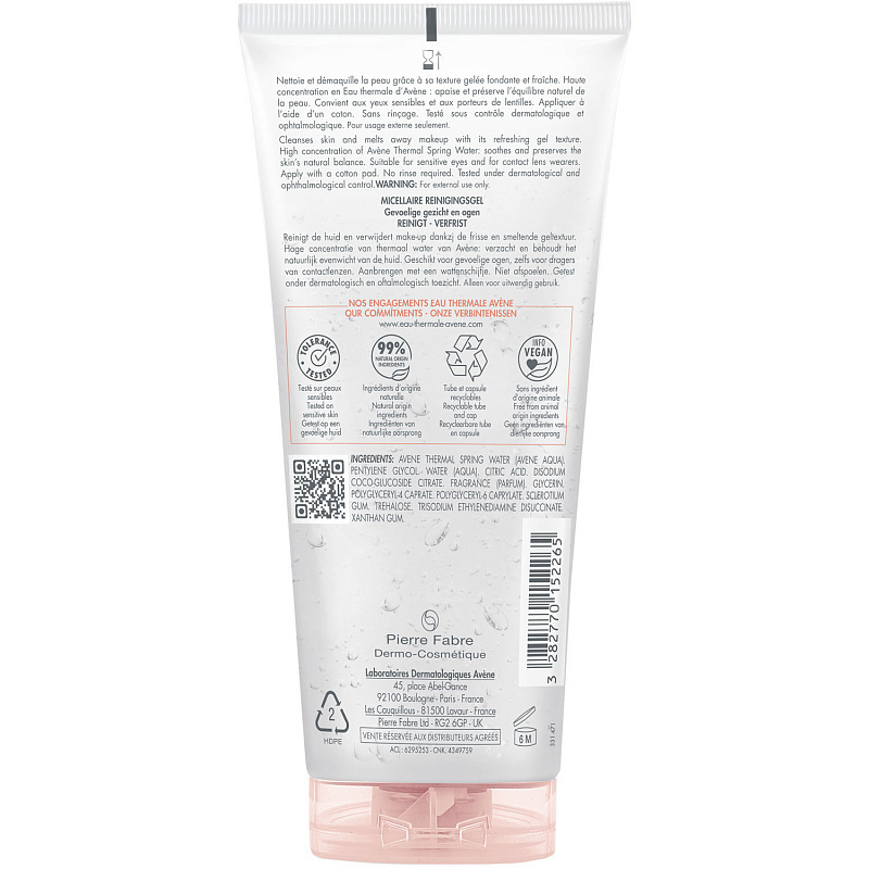 Вечерний ритуал ухода обязательно включает в себя этап очищения кожи и снятия макияжа. Авен предлагает нежный деликатный мицеллярный гель для снятия макияжа. Гель мягко удаляет макияж и очищает кожу. ... Показать описаниеДарит чувство свежести и чистоты. Поддерживает баланс кожи. Протестировано на чувствительной коже под дерматологическим и офтальмологическим контролем. Не содержит ингредиентов животного происхождения. Перерабатываемая упаковка. Для женщин, можно использовать с 18 лет. Для лица, глаз и губ.