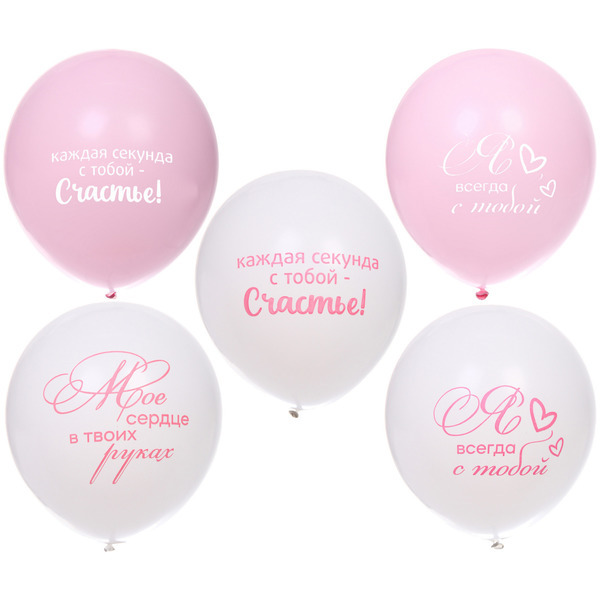 Воздушные шары 100 шт, 10"/25см "Мое счастье", Розовый/белый Вопросы по товару