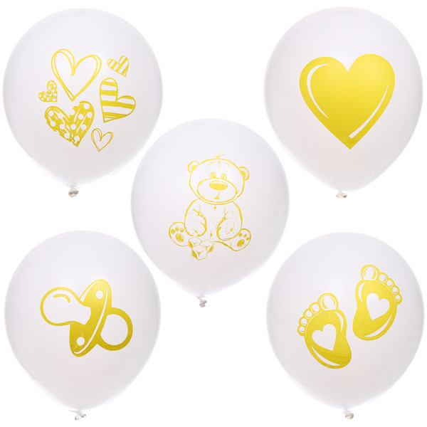 Воздушные шары 25 шт, 10"/25см "Здравствуй, Солнышко", Белый/золото Вопросы по товару