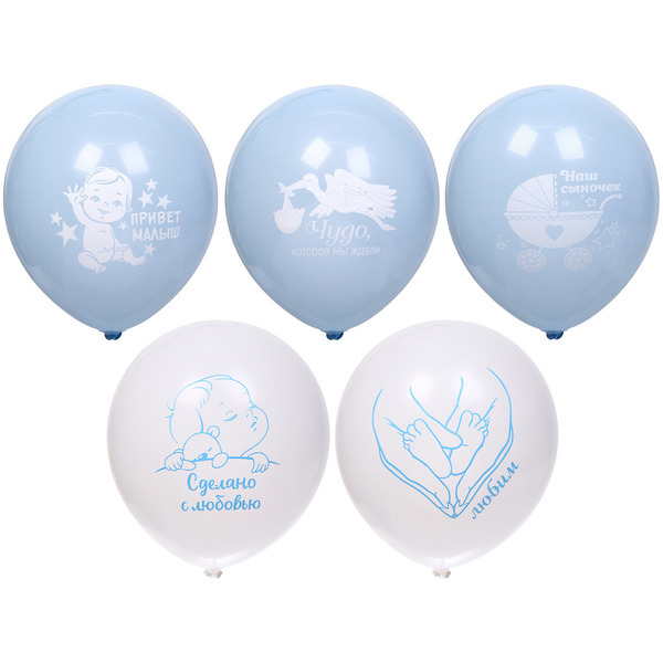 Воздушные шары 5 шт, 10"/25см "Наш сыночек", Голубой/белыйВоздушные шары 5 шт, 10"/25см "Наш сыночек", Голубой/белыйВоздушные шары 5 шт, 10"/25см "Наш сыночек", Голубой/белый