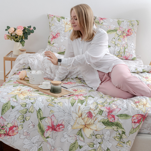 Комплектация: Пододеяльник 205*217, простыня 217х240, наволочка 70*70 (2 шт.) Ткань: Поплин Состав: 100% хлопок Дизайн: Романтика Линейка: Simple life Тематика: Растительные мотивы Цветовая гама: Паст... Показать описаниеельные тона Упаковка: Пакет ПВХ, гофровставка, фирменный фотовкладыш. Страна: Россия Комплект постельного белья изготовлен из набивного поплина плотностью 110 гр/кв.м. Поплин - хлопчатобумажная ткань, благодаря плотному переплетению нитей имеет высокую прочность и гладкость.Ткань мягкая и приятная к телу. Полотно, покорившее Европу, а за ней и весь мир, сегодня самый востребованный материал для постельного белья. Ткань не линяет, естественная усадка не превышает норму, обладает низкой сминаемостью, качество пошива фабричного уровня. Пододеяльник имеет прорезь, наволочки - клапан, простыня содержит открытые кромки. Предложенная комплектация может незначительно отличаться от фотоизображения.