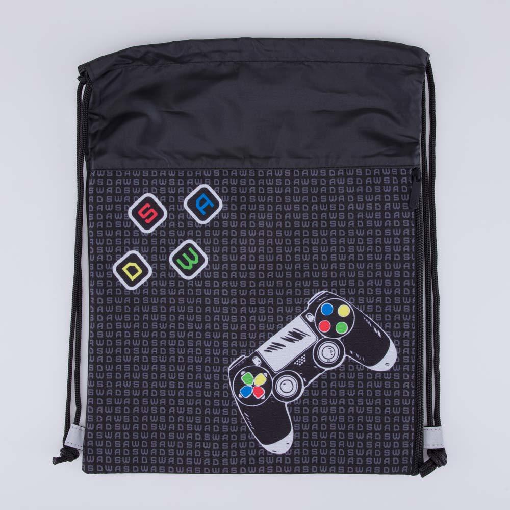 Описание Черный мешок для сменной обуви, украшенный принтом на тему компьютерных игр, пригодится мальчику: в нем удобно носить сменку в детский сад или в школу, в кружок или на секцию. Материал верха ... Показать описаниеизготовлен из плотного полиэстера, обладающего водоотталкивающими свойствами, и защищает обувь от намокания во время дождя и мокрого снега. Мягкая манжета легко затягивается на шнурки с фиксаторами, которые превращаются в удобные лямки для переноски. Функциональные элементы: - боковой карман на молнии глубиной во всю площадь мешка, - на тыльной стороне – прозрачный кармашек для пропуска, - текстильная петелька для переноски мешка в руках, - светоотражающие элементы. Мешок для обуви легко постирать, он быстро сохнет и устойчив к выцветанию. Дизайн мешка идеально сочетается с рюкзаком арт. 02704385-40. Капсульная коллекция в едином дизайне создает интересный школьный комплект. Размер: 40*50 см. Материал: 100% полиэстер. ТМ Котофей.