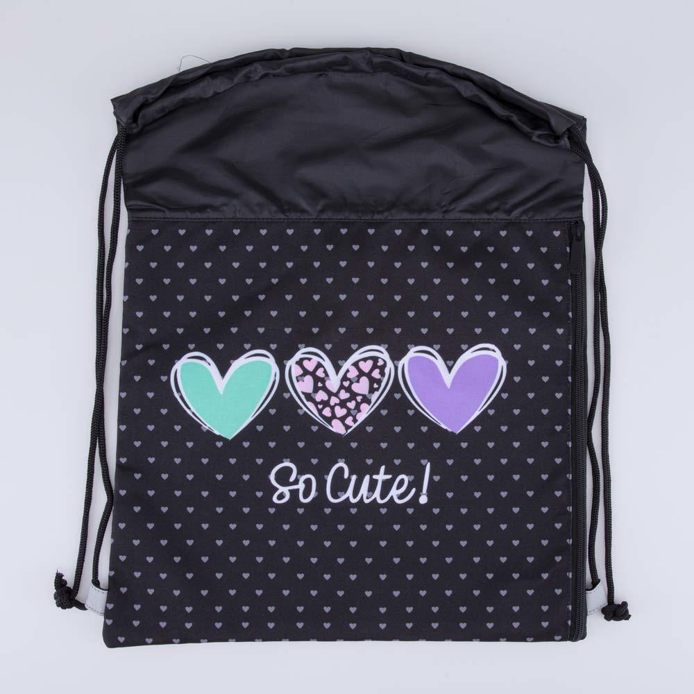 Описание Черный мешок для сменной обуви, украшенный принтом в виде сердечек, пригодится девочке: в нем удобно носить сменку в детский сад или школу, в кружок или на секцию. Материал верха изготовлен и... Показать описаниез плотного полиэстера, обладающего водоотталкивающими свойствами, и защищает обувь от намокания во время дождя и мокрого снега. Мягкая манжета легко затягивается на шнурки с фиксаторами, которые превращаются в удобные лямки для переноски. Функциональные элементы: - боковой карман на молнии глубиной во всю площадь мешка, - на тыльной стороне – прозрачный кармашек для пропуска, - текстильная петелька для переноски мешка в руках, - светоотражающие элементы. Мешок для обуви легко постирать, он быстро сохнет и устойчив к выцветанию. Размер: 40*50 см. Материал: 100% полиэстер. ТМ Котофей.