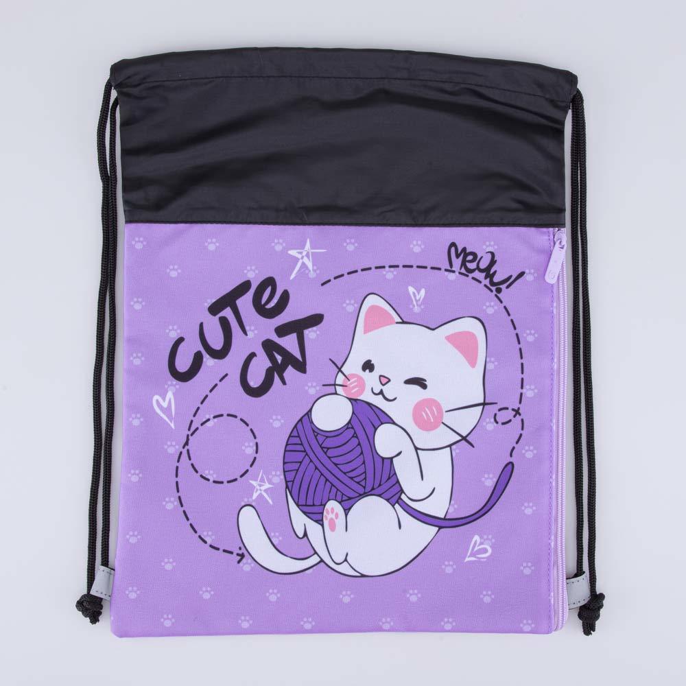 Описание Мешок для сменной обуви, украшенный принтом в виде милого прищурившегося котенка, пригодится девочке в учебный сезон: в нем удобно носить сменку в школу, в кружок или на секцию. Материал верх... Показать описаниеа изготовлен из плотного полиэстера, обладающего водоотталкивающими свойствами, и защищает обувь от намокания во время дождя и мокрого снега. Мягкая манжета легко затягивается на шнурки с фиксаторами, которые превращаются в удобные лямки для переноски. Функциональные элементы: - боковой карман на молнии глубиной во всю площадь мешка, - на тыльной стороне – прозрачный кармашек для пропуска, - текстильная петелька для переноски мешка в руках, - светоотражающие элементы. Мешок для обуви легко постирать, он быстро сохнет и устойчив к выцветанию. Дизайн мешка идеально сочетается с формованным рюкзаком 02804385-40 и пеналом 06805030-40. Капсульная коллекция в едином дизайне создает очаровательный школьный комплект. Размер: 40*50 см. Материал: 100% полиэстер. ТМ Котофей.