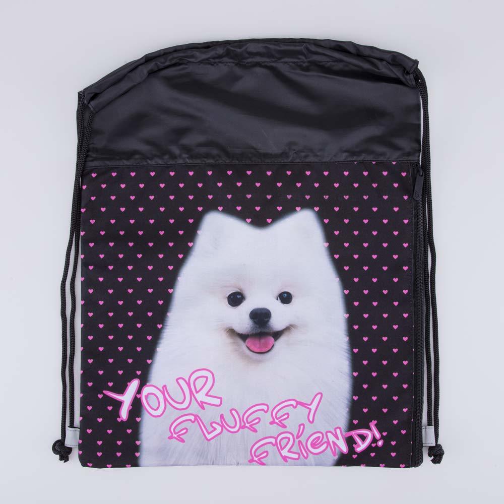 Описание Черный мешок для сменной обуви, украшенный принтом в виде белоснежного пёсика породы шпиц, пригодится девочке: в нем удобно носить сменку в детский сад или школу, в кружок или на секцию. Мате... Показать описаниериал верха изготовлен из плотного полиэстера, обладающего водоотталкивающими свойствами, и защищает обувь от намокания во время дождя и мокрого снега. Мягкая манжета легко затягивается на шнурки с фиксаторами, которые превращаются в удобные лямки для переноски. Функциональные элементы: - боковой карман на молнии глубиной во всю площадь мешка, - на тыльной стороне – прозрачный кармашек для пропуска, - текстильная петелька для переноски мешка в руках, - светоотражающие элементы. Мешок для обуви легко постирать, он быстро сохнет и устойчив к выцветанию. Размер: 40*50 см. Материал: 100% полиэстер. ТМ Котофей.