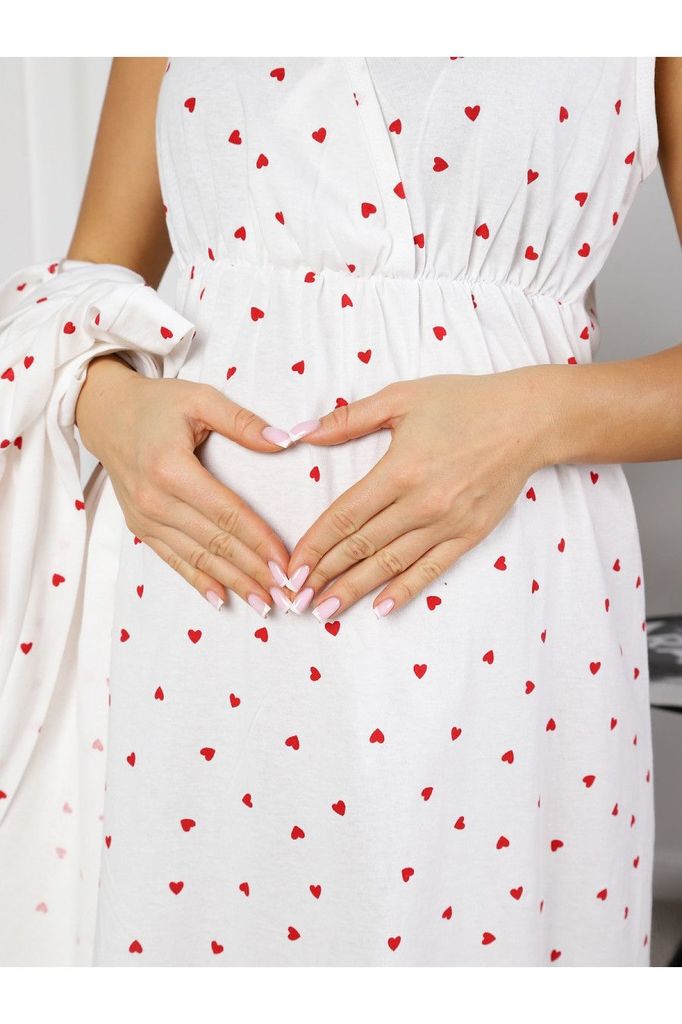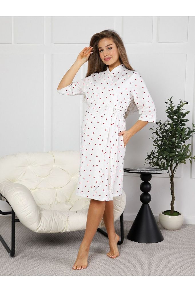 Ж-8.1680 Комплект для беременных (халат, сорочка) белый, сердечкиВопросы по товару