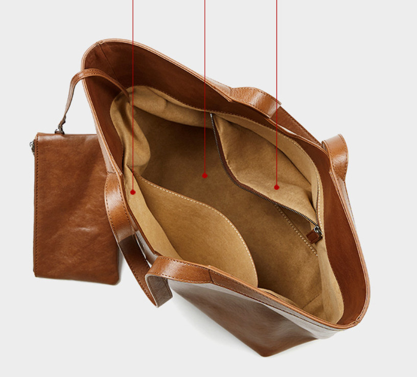 Вместительная кожаная женская сумка-тоут. Лаконичный дизайн, длинные ручки для ношения на плече, удобная открытая форма. В комплекте — съёмный внутренний клатч на молнии. Практичная модель для города ... Показать описаниеи работы. Материал: натуральная кожа ( сертификат на изделие см. в ряду фото). Размер: см.фото. Подробное описание: https://modernbag.ru/index.php?productID=39346