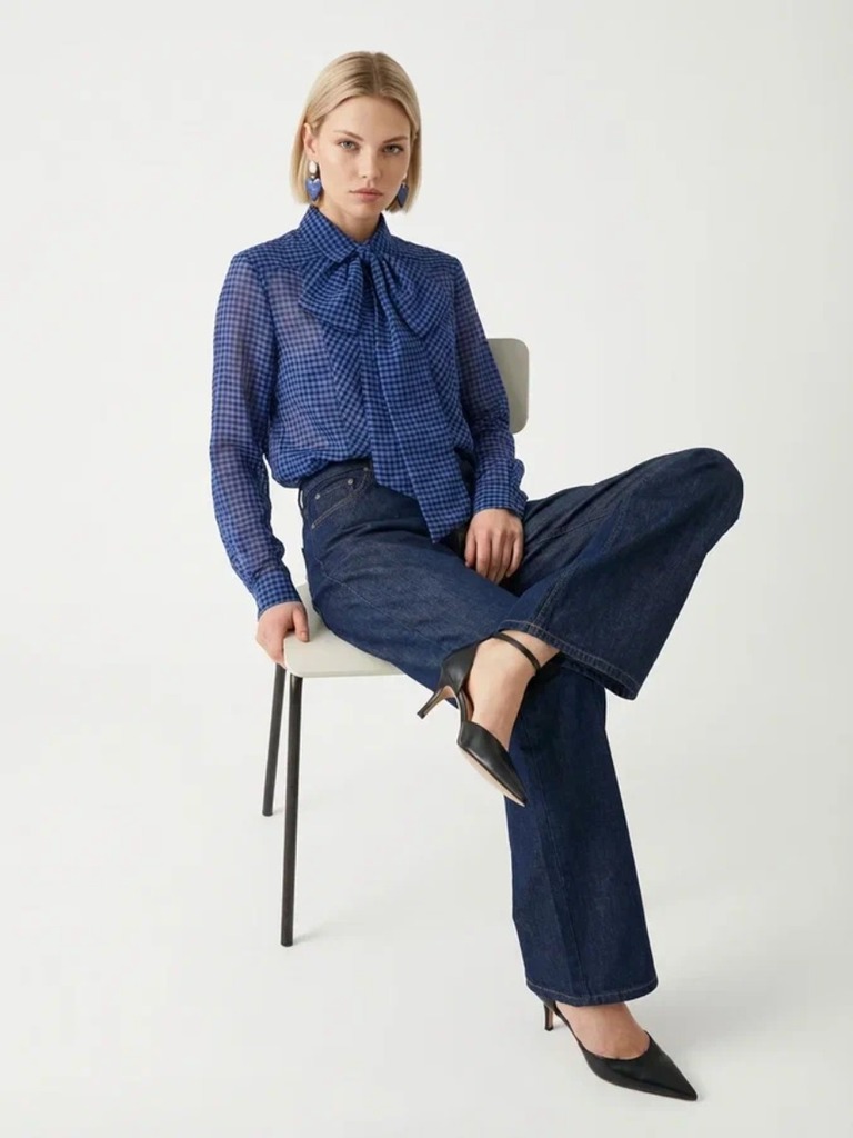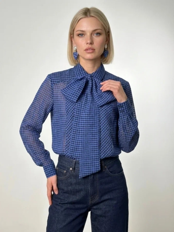 Блузка из органзы со съемным воротником OD-930-1 синий Вопросы по товару