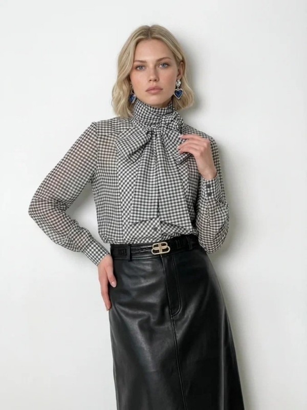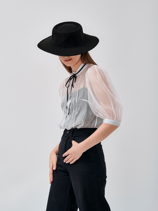Блузка из органзы с мушками и галстуком OD-986-1 черныйБлузка из органзы с мушками и галстуком OD-986-1 черныйБлузка из органзы с мушками и галстуком OD-986-1 черный