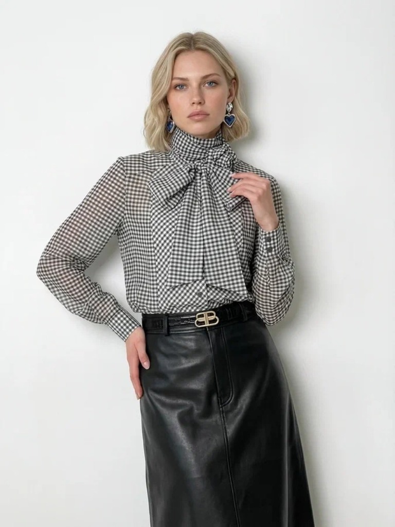Блузка из органзы в клетку OD-984-2 коричневый с белым Вопросы по товару