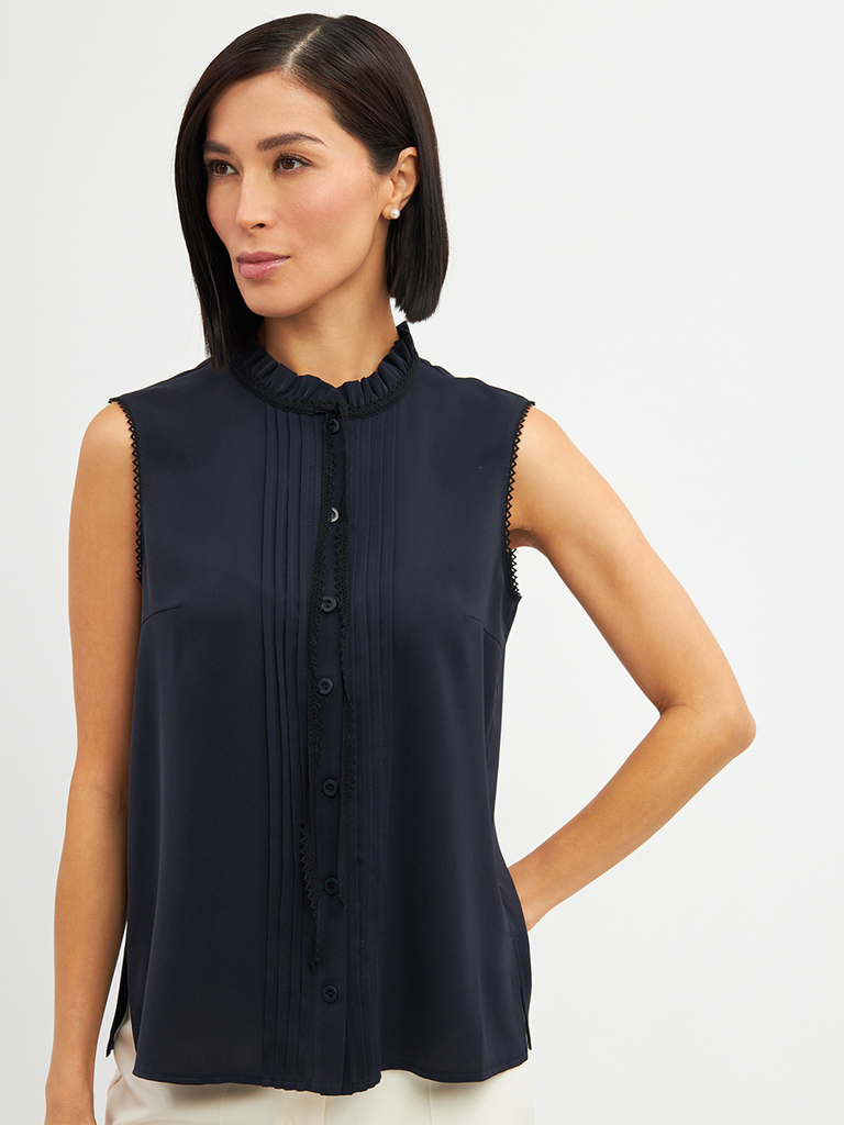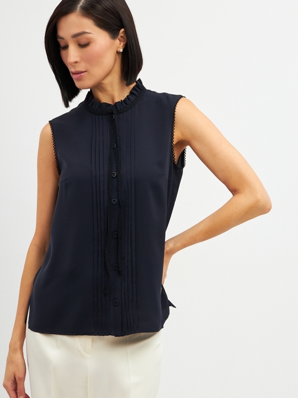 Блузка из органзы с воротником-стойкой и защипамиБлузка из органзы с воротником-стойкой и защипамиБлузка из органзы с воротником-стойкой и защипами