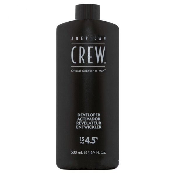 Линейка бренда: American Crew Precision Blend. Окислитель, %: 4,5. Тип волос: Седые. Бренд: AMERICAN CREW. Описание. American Crew Precision Blend Developer - Биоактиватор 4.5 % (500 мл). Биоактиватор... Показать описание используется в сочетании с оттенками краски Precision Blend: - светлым, средним пепельным, средним натуральным и темным, для оптимальных результатов при подкрашивании седины. Биоактиватор используют вместе с препаратами для окрашивания седых волос. Одного флакона хватает примерно на 11 процедур. Препарат с концентрацией активного вещества 4,5%, как и любое химическое вещество, может вызвать аллергическую реакцию, поэтому перед использованием нужно провести тест - нанести каплю средства на сгиб локтя. Если реакции - покраснения и отечности не будет, биоактиватор можно использовать. Подберите нужный оттенок краски (в линии представлены оттенки блонд, средний натуральный, средний пепельный, темный натуральный) и смешайте с биоактиватором в пропорции 1/1. Если волосы короткие, будет достаточно смешать по 10 мл краски и биоактиватора. Подробное описание: https://beautyservice.ru/catalog/dlya_volos/oksidy_aktivatory/bioaktivator_american_crew_precision_blend_4_5_500_ml/