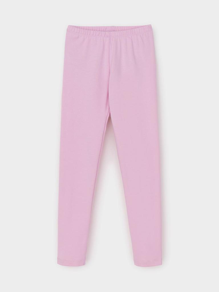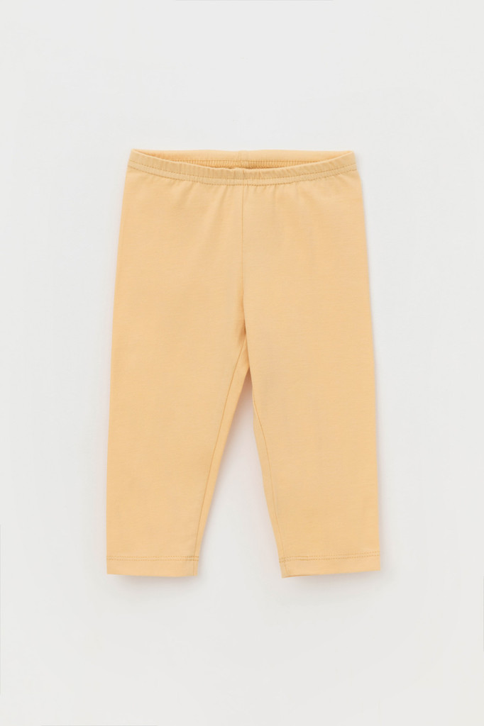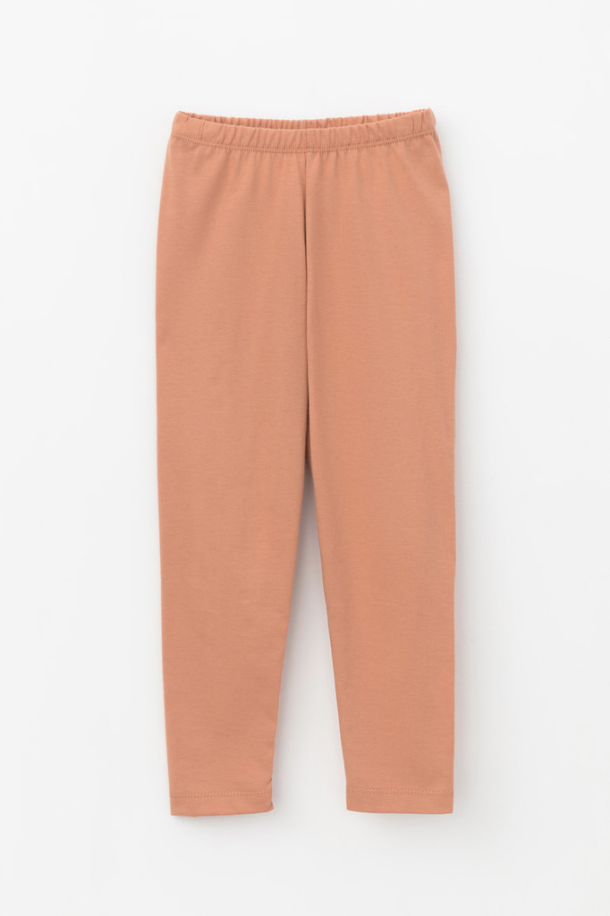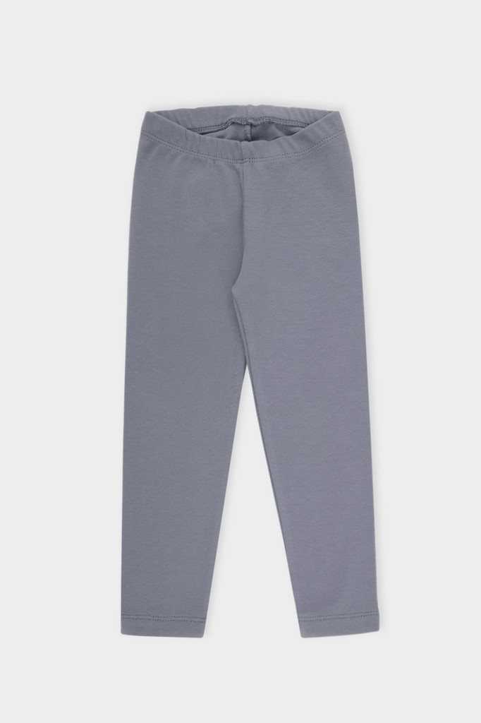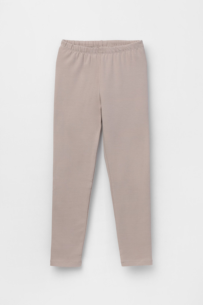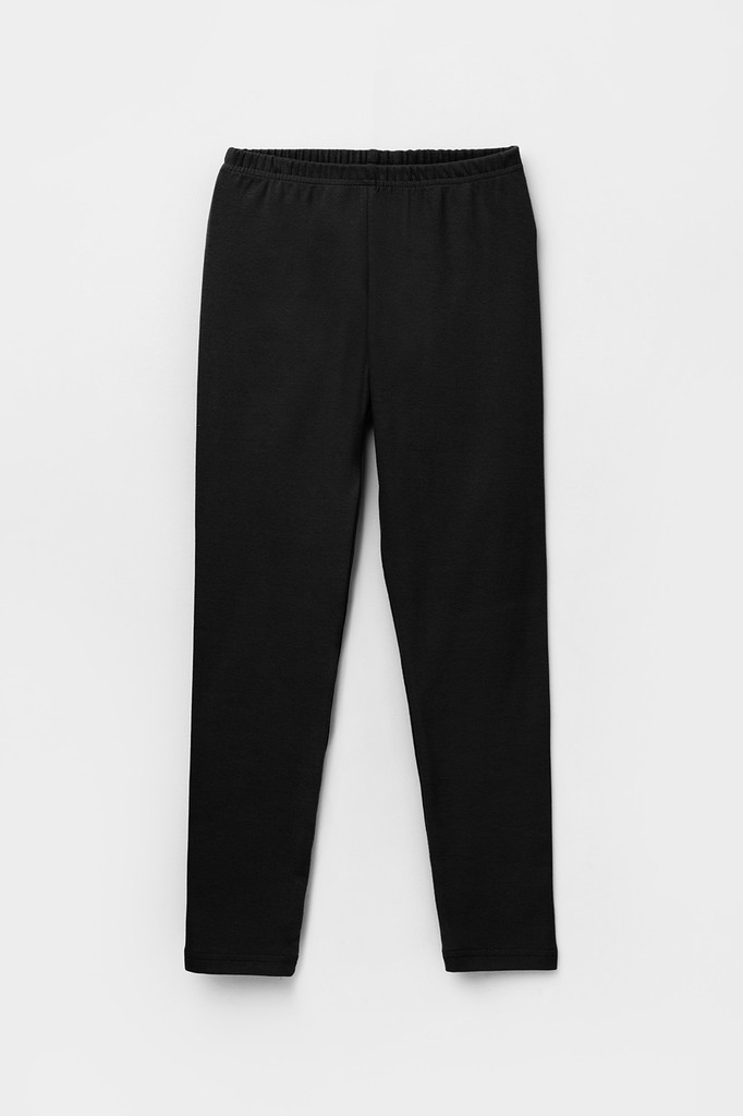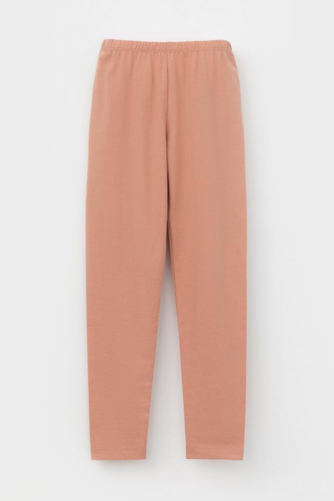 Длинные лосины для девочки из однотонного эластичного трикотажа. Цельнокроеный пояс с плоской резинкой внутри.