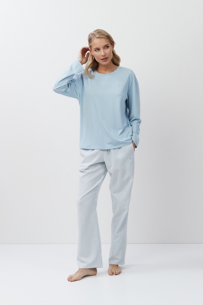 Пижама женская со штанами BONNIE для вашего ночного комфорта. Футболка с длинными рукавами, выполнена из хлопка с модалом. Штаны свободные, с эластичным поясом с завязкой и двумя боковыми карманами. В... Показать описаниеыполнены из мягкого фланелевого хлопка. Расслабьтесь с максимальным комфортом и стилем в пижаме BROOKE. op: 48% Modal 48% Cotton 4% Elastane, Bottom: 100% Cotton
