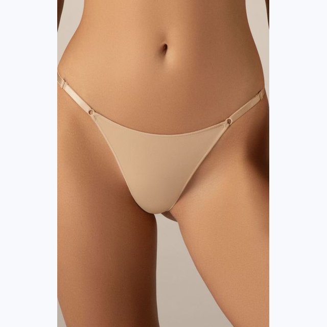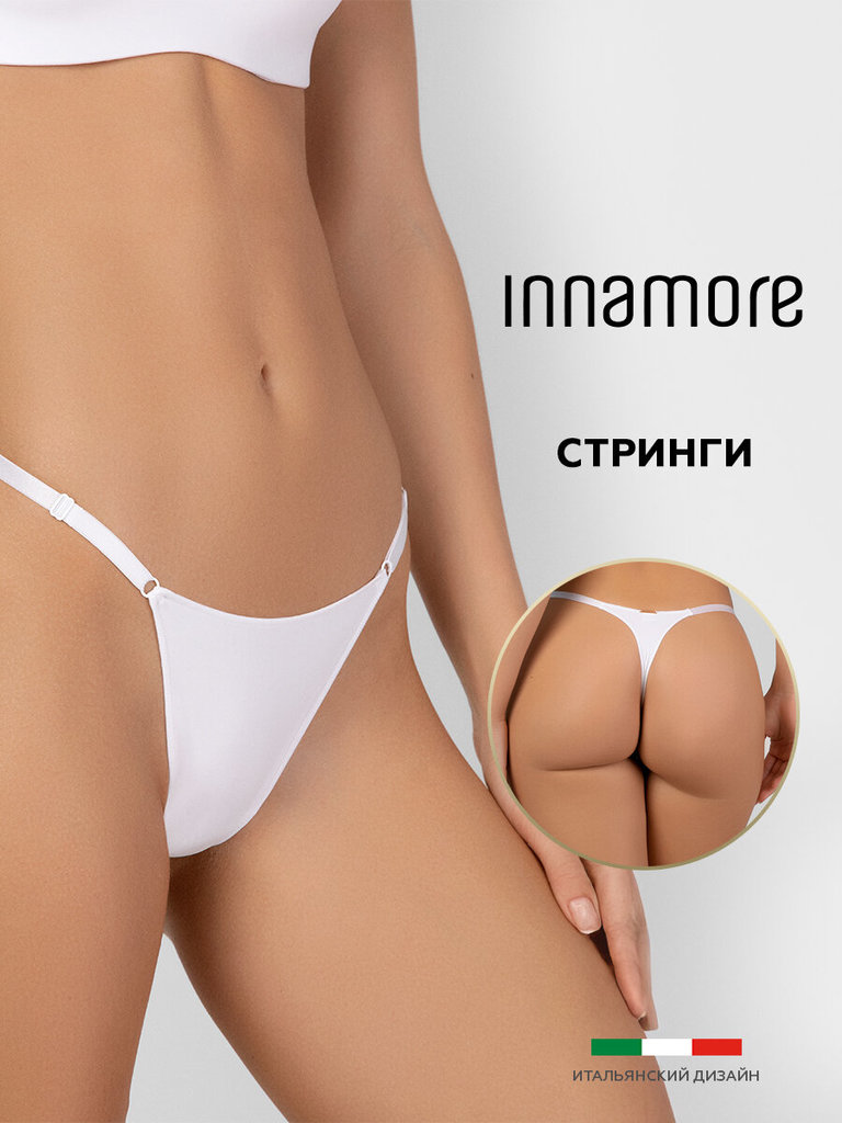 Трусики женские Innamore классические стринги женские с низкой посадкой. Трусики выполнены из нежной гладкой микрофибры. Трусы женские с тонкими перемычками визуально удлиняют ноги, максимально открыв... Показать описаниеая бедра и ягодицы. Такие стринги имеют хлопковую ластовицу, которая делает их дышащими и более гигиеничными. Трусы на низкой посадке имеют премиум качество и представляют собой повседневный элемент базового гардероба. Классический базовый бежевый цвет придаст нежности и утонченности вашему образу, они придутся по вкусу всем любительницам классических решений. Стринги из мягкой микрофибры отличаются своей структурой - они выполнены с тонкими, регулируемыми бретелями по бокам, что добавляет особый шарм этому предмету одежды. Они будут отлично сочетаться с любым бюстгальтером и подчеркнут вашу индивидуальность. Благодаря своей посадке, они идеально подчеркнут естественные формы тела и визуально удлинят ноги.