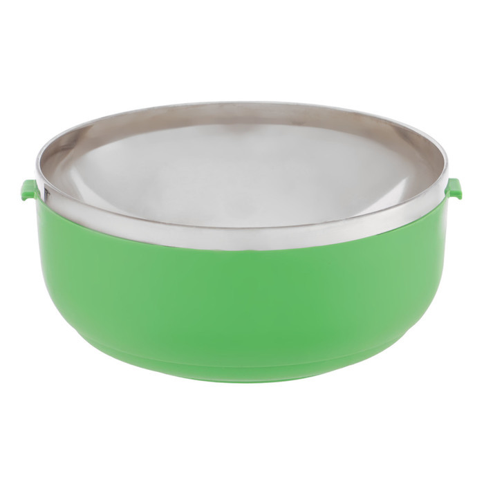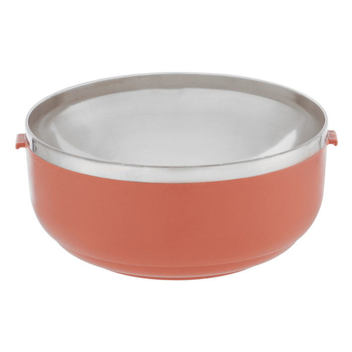 Обед на ходу! Ланч-бокс для еды на 450 мл – контейнер с прибором, где еда сохраняет тепло. Особенности: * Объём 450 мл с прибором: вместимость подходит для небольших обедов – йогурт, фрукты или салат.... Показать описание Прибор вкладывается внутрь, экономя место в сумке. Круглая форма подойдет для любой сумки. * Сохранение тепла до 6 часов: нержавеющая сталь внутри задерживает температуру горячих блюд, поддерживая свежесть до конца дня. Пластик снаружи облегчает перенос без риска ожогов. * Герметичная конструкция: крышка предотвращает протечки. голубой цвет корпуса и чёрная крышка добавляют контраста и лёгкости. Материалы без запаха, устойчивые к коррозии. * Уход: мытьё руками сохраняет качество – ни СВЧ, ни автоматическая машина не нужны. Комбинация стали и пластика обеспечивает долговечность для ежедневного использования. Практичное решение для обедов Ланч-бокс держит еду свежей и горячей до 6 часов. Он подходит для порционных блюд, с прибором в комплекте. Выберите его тем, кто ценит порядок в питании без лишних хлопот.