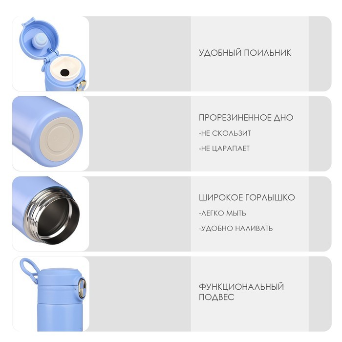 Ланч бокс TAKE IT EASY «В школу», 450 мл, 12.3?9.2 см, с приборами, сохраняет тепло 6 часов, нержавеющая сталь, голубой Вопросы по товару