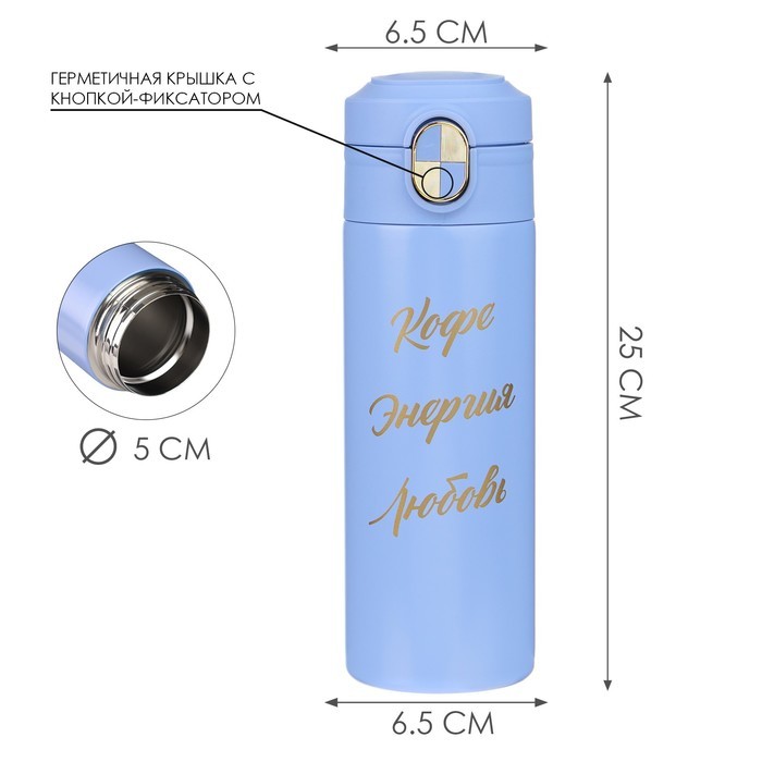 Термокружка для кофе и чая "Мастер К" идеальна для офиса, автомобиля, длительных прогулок и детям в школу. Благодаря специальному покрытию надежно лежит в руке. Термокружка "Мастер К" - это стильный а... Показать описаниексессуар и отличный подарок на новый год, другу, подруге, брату, сестре, девушке, папе, маме, мужу, жене, бабушке и дедушке на день рождения, 23 февраля, 8 марта, 14 февраля. Термокружка сделана из нержавеющей стали марки 304, сконструирована по вакуумной технологии, с двойной стенкой, следовательно, долго держит тепло и не проливается. Снабжена откидывающейся крышкой, изготовленной из экологичного пищевого пластика, имеется кнопка с функцией блокировки, позволяющая с легкостью использовать термос одной рукой. На дне, термокружка имеет специальную прорезиненную основу, предотвращающую царапины на поверхностях. Особенности: * можно открывать и закрывать одной рукой * удобное горлышко (поильник) * нескользящее дно * ставить в автомобильный подстаканник Характеристики: * Открывается с помощью нажатия, есть клапан с защитой от случайного открывания (поднять вверх - закрыть, опустить и нажать - открыть) * 100% защита от протекания * Стильный дизайн, приятна на ощупь * Сохраняет тепло до 8 часов и холод до 8 часов * Двойные стенки из нержавеющей стали * Сеточка из нержавеющей стали для фильтрации напитков * Перед первым применением обдайте внутреннюю колбу кипятком. * После того, как нальёте горячий напиток, через несколько секунд откройте кружку, выпустите пар и снова закройте. Так напиток дольше сохранит температуру. * Нельзя мыть в посудомоечной машине и нагревать в микроволновой печи.