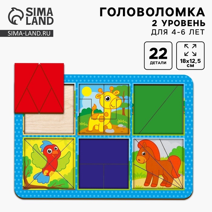 Головоломка геометрическая деревянная «Животные», двусторонниеВопросы по товару