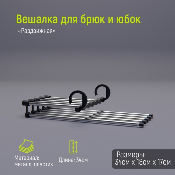 Вешалка для брюк и юбок Доляна, 34?18?17 см, 5 спиц,  раздвижная, цвет хромированныйВешалка для брюк и юбок Доляна, 34?18?17 см, 5 спиц,  раздвижная, цвет хромированныйВешалка для брюк и юбок Доляна, 34?18?17 см, 5 спиц,  раздвижная, цвет хромированный