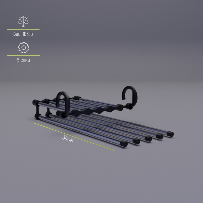 Вешалка для брюк и юбок Доляна, 30?18?12.5 см, 5 спиц, раздвижная, чёрная Вопросы по товару