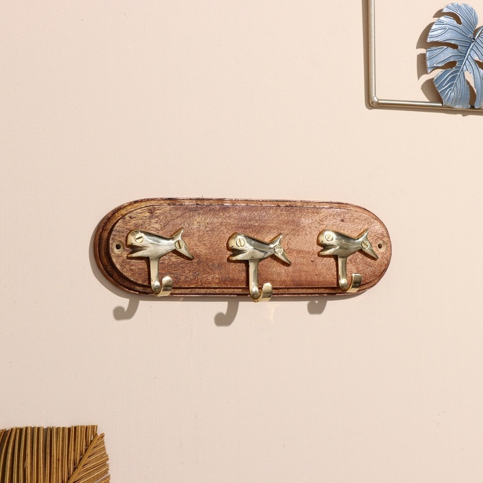 Вешалка "Киты" латунь, мдф 23 смВешалка "Киты" латунь, мдф 23 смВешалка "Киты" латунь, мдф 23 см
