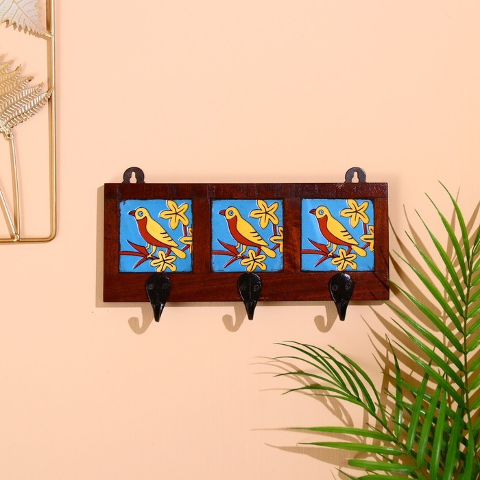 Вешалка настенная «Птички», дерево, 5.5?29?16.5 см, 3 крючка, МИКС