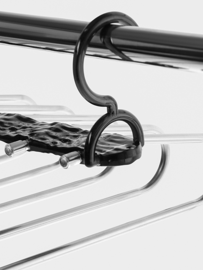 Многоуровневая вешалка для брюк — это практичное решение для хранения и организации вашего гардероба. Её прозрачный чёрный дизайн сочетается с любым интерьером, а металлическая конструкция обеспечивае... Показать описаниет долговечность и устойчивость. Вешалка идеально подходит для хранения брюк, юбок и других предметов одежды, сохраняя их форму и порядок. Особенности * 5 уровней для размещения одежды — удобно и компактно. * Металлическая основа — прочность и надёжность. * Прозрачный чёрный цвет — стильный и универсальный дизайн. * Компактные размеры — подходит даже для небольших шкафов. Почему выбирают эту вешалку? Многоуровневая конструкция помогает эффективно использовать пространство в шкафу, а металлический каркас выдерживает даже плотные ткани. Вешалка не занимает много места, но при этом позволяет хранить до 5 пар брюк или юбок одновременно. Это решение для тех, кто ценит порядок и стиль в деталях. Идеально для вашего гардероба С этой вешалкой ваш гардероб всегда будет в идеальном состоянии. Она не только экономит место, но и помогает сохранить форму одежды, предотвращая появление заломов. Простота и функциональность делают её незаменимым аксессуаром для любого дома. Комплектация * Плечики - 1 шт. Дополнительно Универсальны для любого размера одежды.