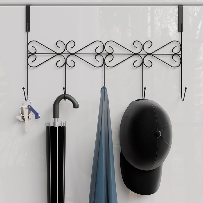 Вешалка на дверь на 5 крючков Доляна «Вензель», 38?22.5?10 см, чёрная