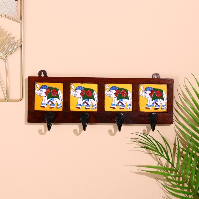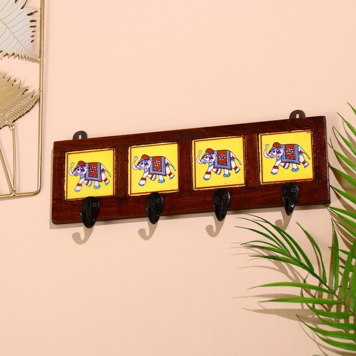 Вешалка «Караван. Слоны», 22?4?12 см, 4 крючка, дерево, МИКС