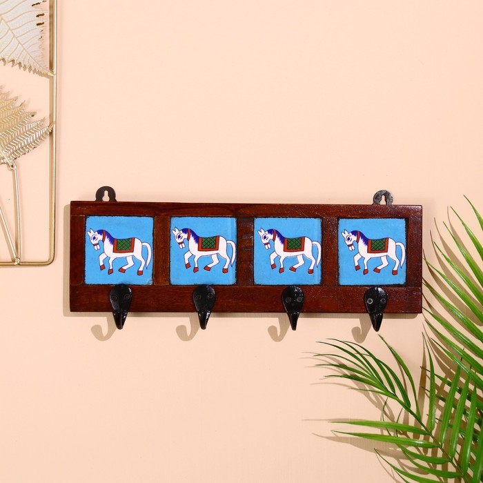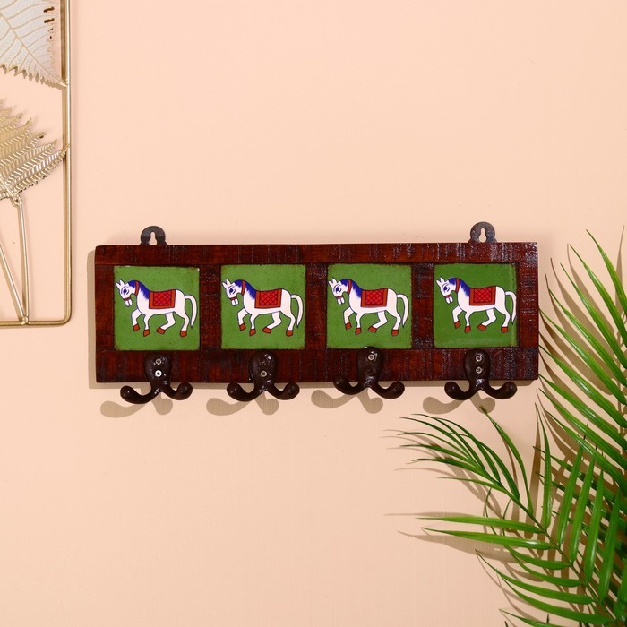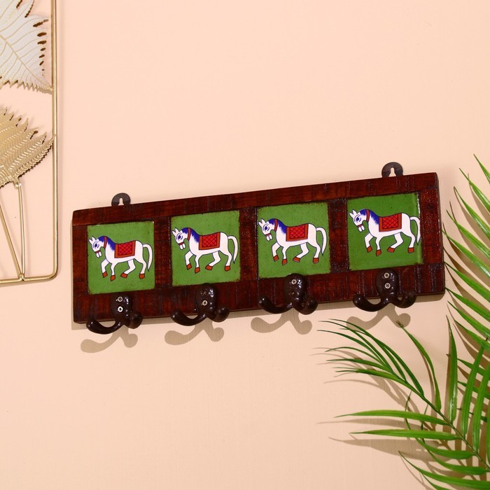 Вешалка «Караван. Лошади», 22?4?12 см, 4 крючка, дерево, МИКС