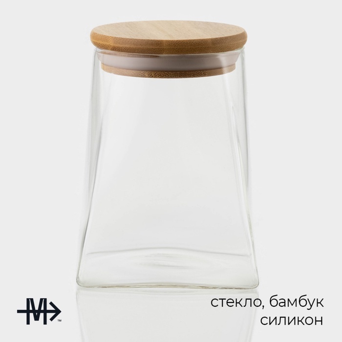 Банка для сыпучих Magistro «Эко. Трапеция», 550 мл, 8.5?12.5 см, с бамбуковой крышкой, стеклоВопросы по товару