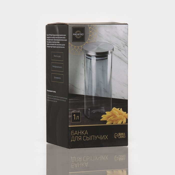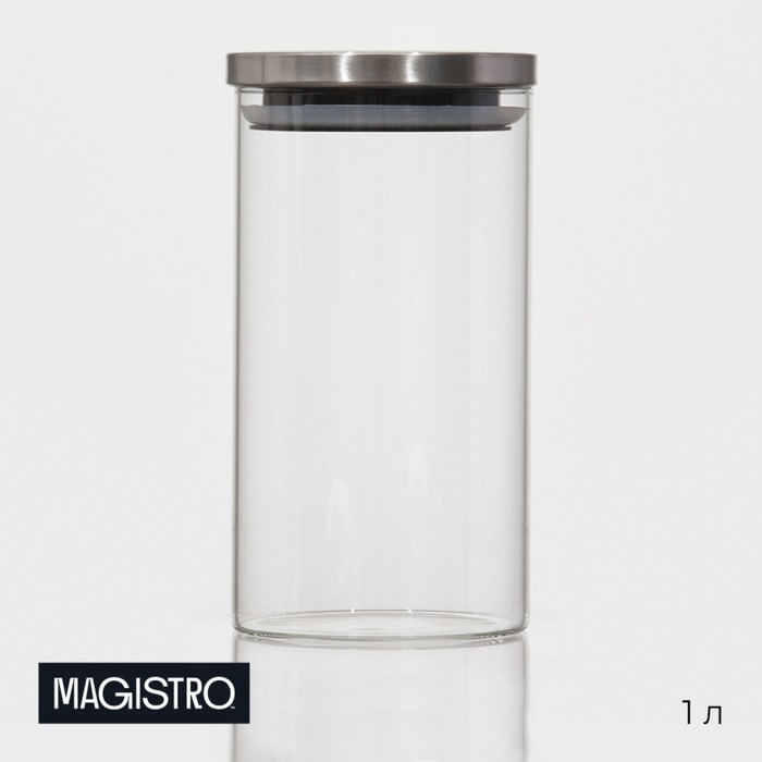 Банка для сыпучих Magistro «Стиль», 1 л, 10.3?19 см, с металлической крышкой, стекло, прозрачнаяВопросы по товару