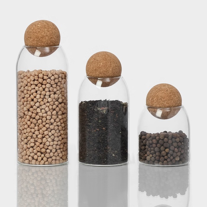 Банки для сыпучих Magistro «Эко», 3 предмета: 450/700/1000 мл, с пробковой крышкой, стекло, прозрачныеВопросы по товару