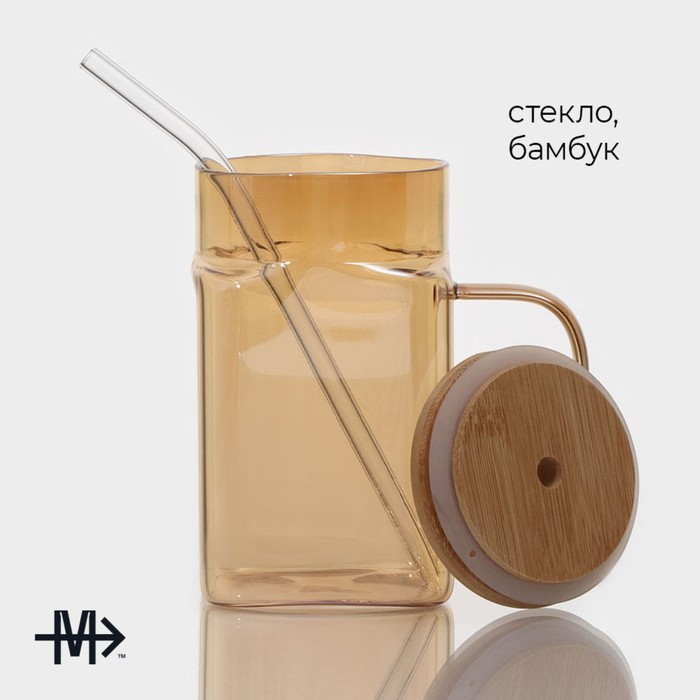 Банка Magistro «Эко», 620 мл, ручка, трубочка, с бамбуковой крышкой, стекло, прозрачная, золотаяВопросы по товару