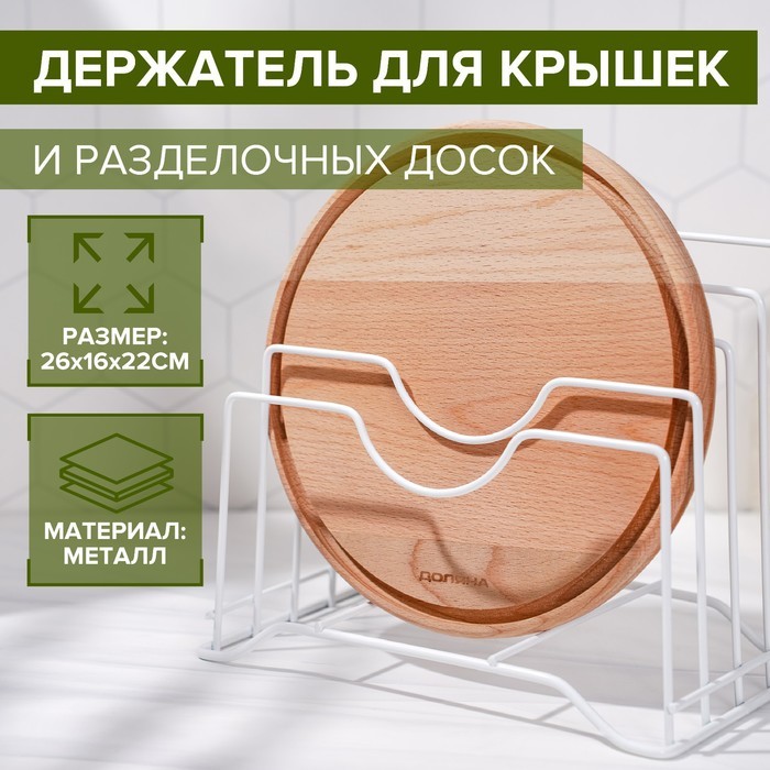 Держатель для крышек и разделочных досок Доляна, 26_16_22 см, цвет белыйВопросы по товару