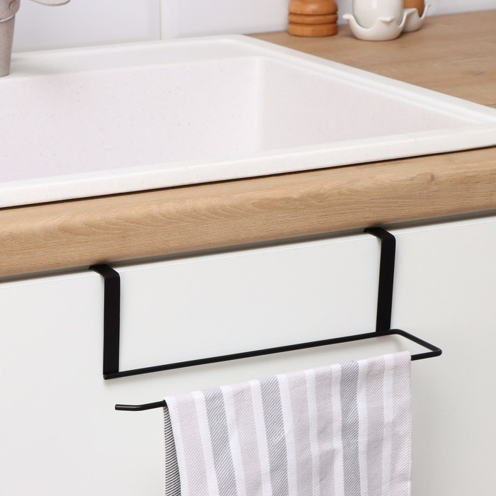 Держатель для полотенец на дверцу Доляна, 3 см, подвесной, 24,5?8,5?7 см, чёрныйВопросы по товару