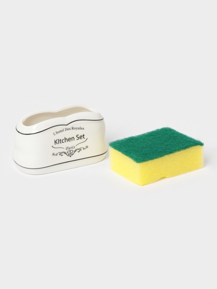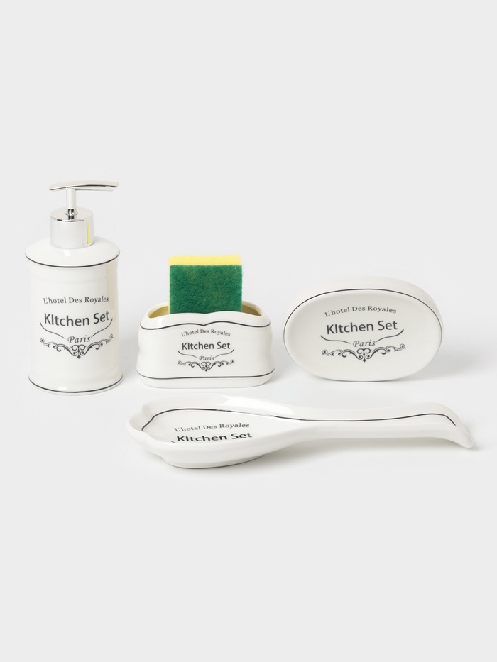 Аксессуары для кухни Доляна «Уют», 4 предмета, дозатор 300 мл, мыльница, подставка для губки, подставка для ложки, белыеВопросы по товару