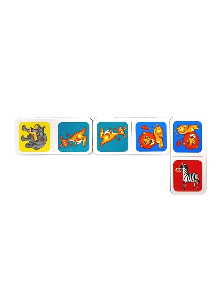 Домино «Зоопарк» — яркая игра, которая увлечёт малышей от 3 лет и станет первым шагом в мир настольных развлечений. 28 фишек с забавными животными помогут ребёнку освоить цвета, развить логическое мыш... Показать описаниеление и научиться играть в команде. Это идеальный выбор для семейного досуга или весёлых игр с друзьями. Особенности * Фишки изготовлены из плотного картона, безопасного для детей. * Яркие рисунки с животными привлекают внимание и делают процесс игры увлекательным. * Компактный размер набора позволяет брать его с собой в путешествия, детский сад или гости. * Простые правила подходят даже для начинающих игроков, делая игру доступной для малышей. Как играть? 1. Перемешайте все фишки и переверните их картинками вниз. Каждый игрок берёт по 7 фишек (или по 5, если участников больше двух). Оставшиеся фишки образуют «базар». 2. Первый ход делает игрок с фишкой, на которой изображены два одинаковых животных (дубль). Эту фишку кладут в центр игрового поля. 3. Следующие игроки по очереди выкладывают фишки так, чтобы животные совпадали с теми, что уже на поле. Если подходящей фишки нет, берут дополнительные из «базара». 4. Побеждает тот, кто первым выложит все свои фишки. Если игра зашла в тупик («рыба»), выигрывает тот, у кого меньше фишек осталось на руках. Чем полезно это домино? Домино «Зоопарк» помогает развивать внимание, логическое мышление и мелкую моторику. Игра учит находить сходства между объектами, различать цвета и формы, а также тренирует память. Совместные игры способствуют развитию коммуникативных навыков и умению работать в команде. Идея для подарка Домино «Зоопарк» станет отличным подарком для ребёнка, который любит яркие и увлекательные игры. Оно подходит как для домашнего использования, так и для игр в детском саду или на развивающих занятиях. Подарите ребёнку возможность весело провести время и одновременно развить важные навыки! Дополнительно Состав игры * Коробка — 13.5 ? 11 см. * Фишки из плотного картона — 28 шт. (3.5 ? 7.5 см). Толщина фишек — 2 мм.