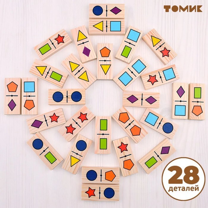 Домино познакомит ребёнка с цветом, научит считать, сравнивать фигурки и находить одинаковые. Такое домино удобно брать с собой в детский сад, в гости или в путешествие. Игры в домино развивают логику... Показать описание, сообразительность и внимание, тренируют память. Особенности * Домино из экологически чистого и безопасного материала с яркими рисунками. * Пирамидка подходит для детских садов, логопедических занятий, подготовки к начальной школе. * Набор способствует развитию коммуникативных навыков через совместные игры. Правила игры Все плашки переворачиваются «лицом» вниз. Каждый игрок берёт по 6 плашек, не показывая их другим. Остальные плашки откладываются в резерв. Если участвует больше четверых человек, то раздать можно сразу по 5 плашек. Первый ход делает тот, у которого есть плашка с одинаковыми рисунками на обеих сторонах. Эта плашка выкладывается в центре поля. Следующий игрок выкладывает плашку с таким же изображением в любую сторону от первой. Ход переходит к игрокам по часовой стрелке. Если у кого-то нет плашки с подходящим рисунком, то он берёт плашку из резерва. Если и она не подходит, то ход переходит следующему противнику. Ход пропускается, когда резервные фишки заканчиваются. Выигрывает тот, у кого быстрее всех закончатся плашки.