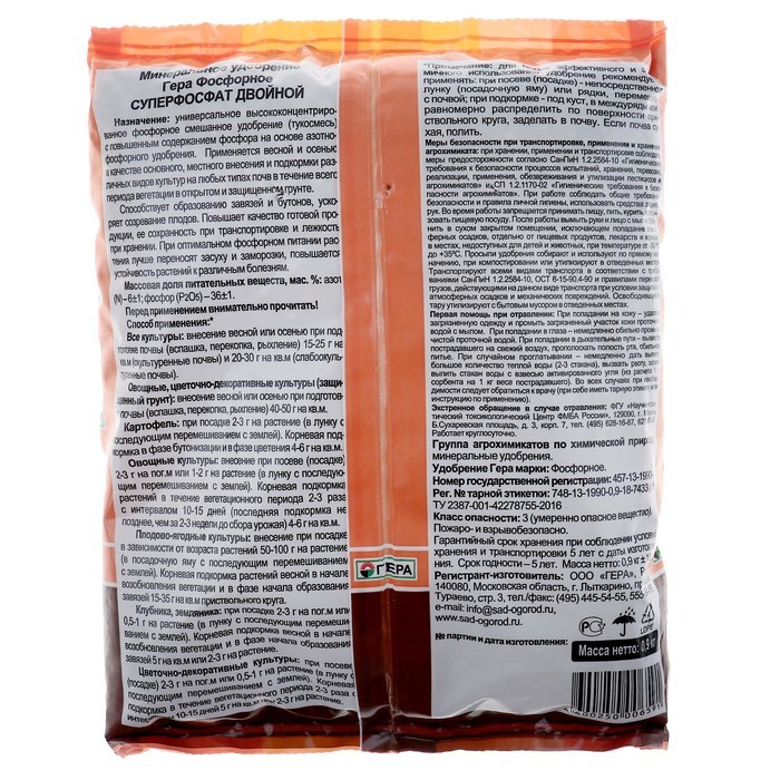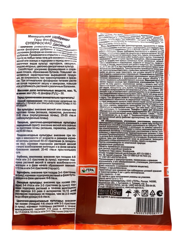 Удобрение "ГЕРА" Суперфосфат двойной, Фосфорное, 900 гВопросы по товару