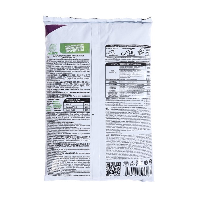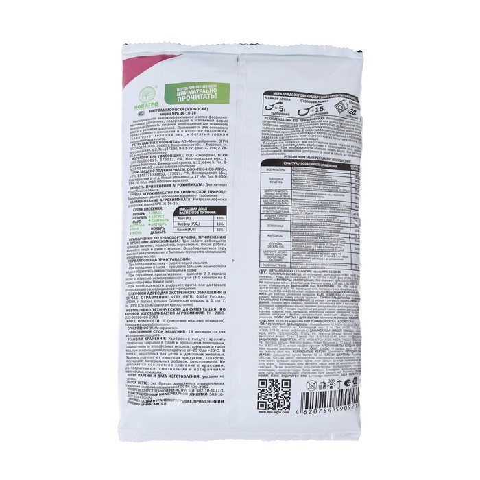 Удобрение минеральное Азофоска Нов-Агро (нитроаммофоска), 3 кгВопросы по товару