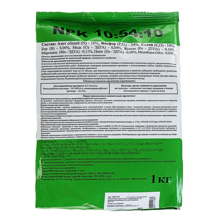 Удобрение минеральное ПЛАНТАФИД 10-54-10 NPK с микроэлементами, 1 кгВопросы по товару
