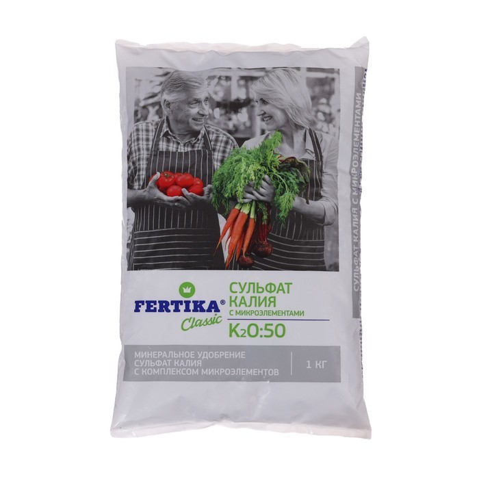 Удобрение «Сульфат калия» Фертика, 1 кг – это минеральное удобрение в гранулах, которое повышает иммунитет растений, их устойчивость к морозам и стрессам. Подходит для всех видов культур и применяется... Показать описание осенью для подготовки растений к зимнему периоду. * Универсальное применение: Удобрение подходит для овощных, плодовых, декоративных и ягодных культур. Оно обеспечивает растения необходимым калием, который способствует их здоровому росту и развитию. * Повышение устойчивости: «Сульфат калия» укрепляет иммунитет растений, делая их более устойчивыми к болезням, засухе и морозам. Это особенно важно в осенний период, когда растения готовятся к зиме. * Удобная форма: Гранулы легко дозировать и вносить в почву. Они постепенно растворяются, обеспечивая растения питательными веществами на протяжении длительного времени. * Безопасность: Удобрение относится к 3 классу опасности (умеренно опасные), что делает его безопасным при правильном использовании. Оно не содержит хлора, что важно для чувствительных культур. Идеальный выбор для сада и огорода: Удобрение «Сульфат калия» от Фертика – это надежный способ поддержать здоровье растений и повысить их урожайность. Подходит как для опытных садоводов, так и для новичков. Позаботьтесь о своих растениях – обеспечьте им крепкий иммунитет и устойчивость к неблагоприятным условиям!