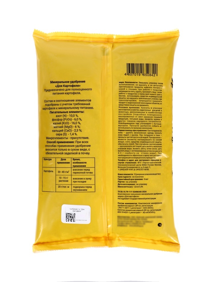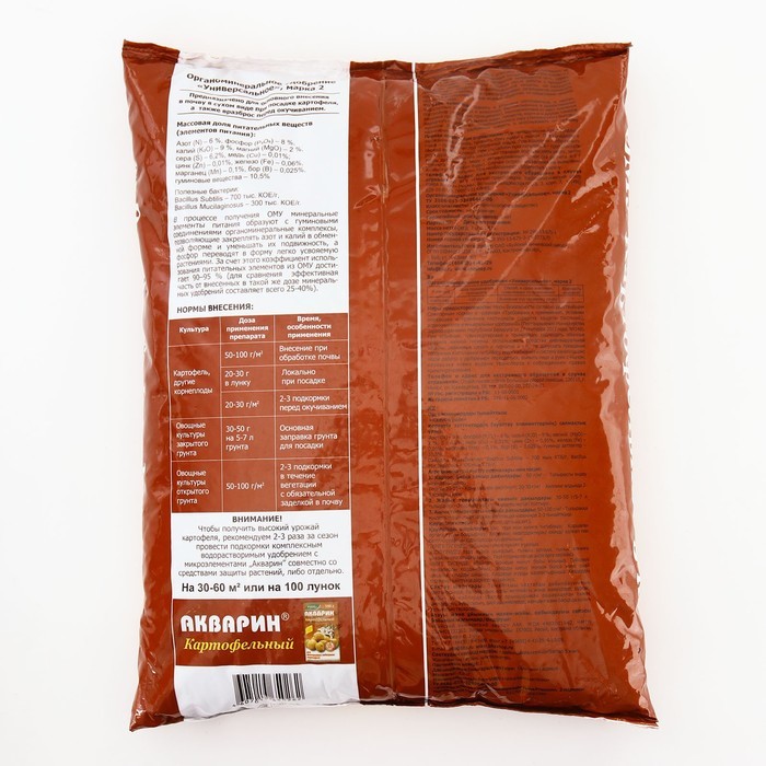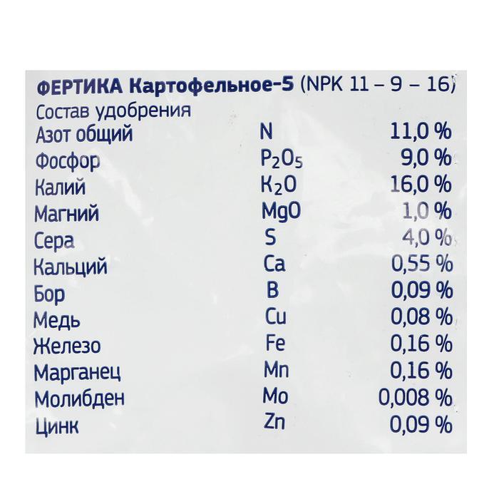 Важным аспектом выращивания картофеля является правильное удобрение, которое обеспечивает растению необходимые питательные вещества для роста и развития. Удобрение для картофеля Картофельная формула я... Показать описаниевляется оптимальным для обеспечения растения всеми необходимыми элементами. Данное удобрение содержит комплекс макро- и микроэлементов, таких как азот, фосфор, калий, магний, железо, марганец, цинк и другие. Они необходимы для роста и развития картофеля, а также для повышения урожайности и качества продукции. Для достижения максимального эффекта рекомендуется применять удобрение в соответствии с инструкцией на упаковке. Обычно его вносят в почву до посадки картофеля или в период его активного роста. Расход удобрения зависит от типа почвы, условий выращивания и стадии развития растения. Необходимо соблюдать рекомендации по применению и учитывать особенности конкретного участка земли.