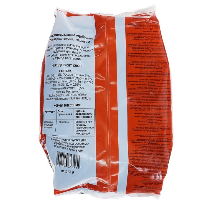 Комплексное бесхлорное гранулированное удобрение пролонгированного действия. Легкодоступный комплекс питательных элементов сформирован в гранулу, которая постепенно растворяется в почве, обеспечивая п... Показать описаниеролонгированное и равномерное питание растений. Органические соединения эффективно улучшают плодородие и структуру почвы, содержат гуминовые кислоты, стимулирующие иммунную систему растений и развитие мощной корневой системы, ускоряют обменные процессы, снижая содержание нитратов и увеличивая количество витаминов, сахаров и других ценных веществ в плодах. Органоминеральное удобрение "Огородник" • сокращает сроки созревания • повышает урожайность лука и чеснока • улучшает лежкость урожая. Не содержит хлора, негативно влияющего на рост и развитие растений. Питательные элементы: азот - 7; фосфор - 7; калий - 8; магний - 1; железо - 0,16; марганец - 0.05; бор - 0,02; медь - 0,01; цинк - 0,01; гуматы - не менее 0,5. НЕ ПОДХОДИТ ДЛЯ ГОРШЕЧНЫХ РАСТЕНИЙ, ОНО ИСПОЛЬЗУЕТСЯ В ОТКРЫТЫЙ ГРУНТ