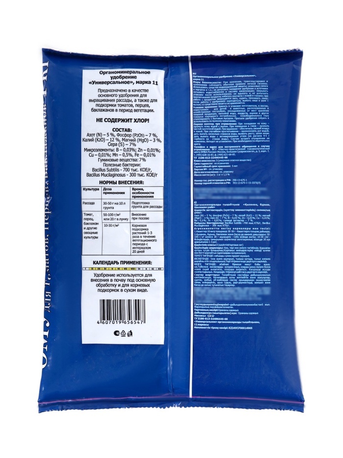 Удобрение содержит полный сбалансированный набор элементов питания, необходимых для нормального роста и развития растений. Диатомит - природный пористый минерал из окаменевших отложений диатомовых вод... Показать описаниеорослей. Наличие в диатомите кремния в аморфной форме, легко растворимой для питания растений, способствует усвоению и удержанию влаги, питательных веществ и постепенной их отдаче корневой системе растений, тем самым позволяя снизить нормы расхода NPK и других элементов питания растений. Ускоряет рост растений, увеличивает урожайность, способствует более лучшему вызреванию корнеплодов, улучшению качества урожая за счет повышения содержания крахмала, сахаров и витаминов и дальнейшему хранению урожая, а также повышает сопротивляемость растений к внешним неблагоприятным факторам (болезням, насекомым-вредителям, засухе и заморозкам).