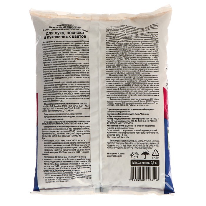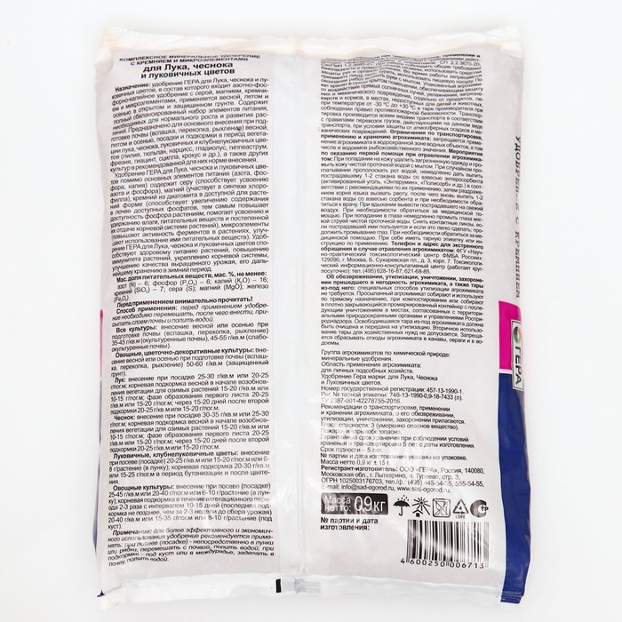 Минеральное удобрение с диатомитом «Гера» для Лука, Чеснок и Луковичных цветов, 0.9 кгВопросы по товару