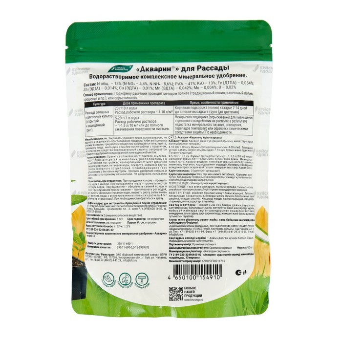 Удобрение комплексное водорастворимое Акварин "Для рассады", 0,5 кгВопросы по товару